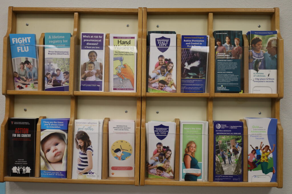 Pamphlets in the lobby of the Abilene Public Health District connect patients to health resources available in Taylor County and nearby areas. (Photo by Baylie Simon)